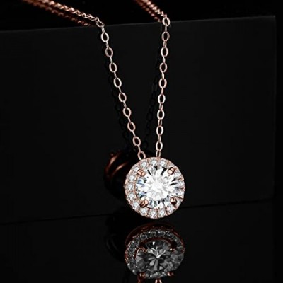 JewelryPalace 라운드 1ct Moissanite 헤일로 체인 펜던트, 시뮬레이션 다이아몬드 신부 보석 세트, 목걸이 여성 실버 925 목걸이 여성 스톤, 보석 소녀 여성용 선물 로즈 골드 4