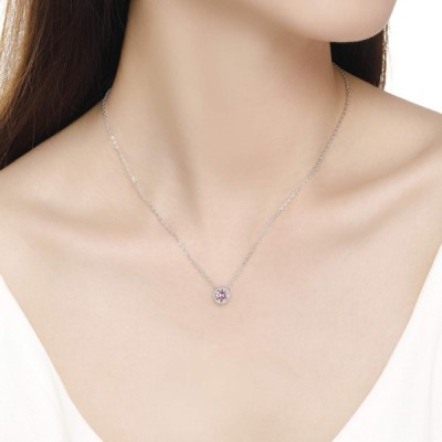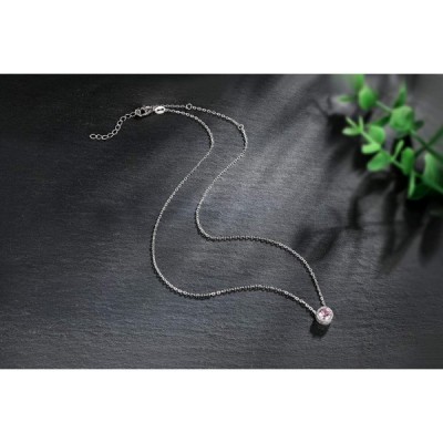 Presentski 탄생석 펜던트 목걸이 925 스털링 실버 -- 단일 라운드 큐빅 지르코니아 크리스탈 보석 탄생석 목걸이 여성용 선물 여자 10월