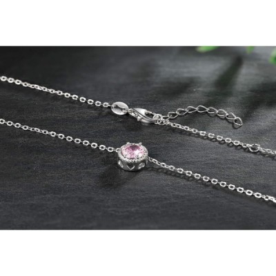 Presentski Birthstone Pendant Necklace 925 Sterling Silver -- Single Round Cubic Zirconia Crystals Gemstone Birthstones Necklaces Gift for Women Girls October
