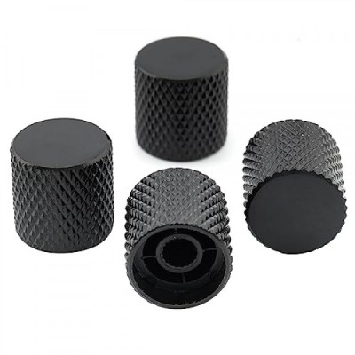 Musiclily Metric 6mm Metal Guitar Flat Top Dome Knobs Volume Tone Control Knobs for Fender Telecaster Tele Electric Guitar Precision Bass, Black(4 Pcs)