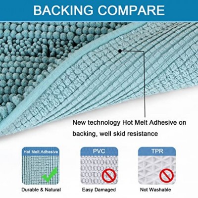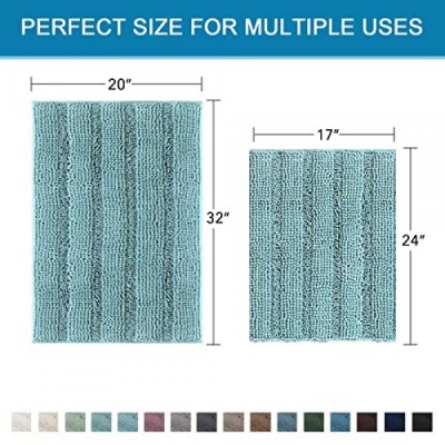 H.VERSAILTEX Extra Thick Chenille Striped Pattern Bath Rugs for Bathroom Non Slip - Soft Plush Shaggy Mats for Floor, Indoor, Entryway (Aqua Haze, 32 x 20 Plus 24 x 17 - Inches)
