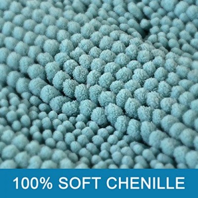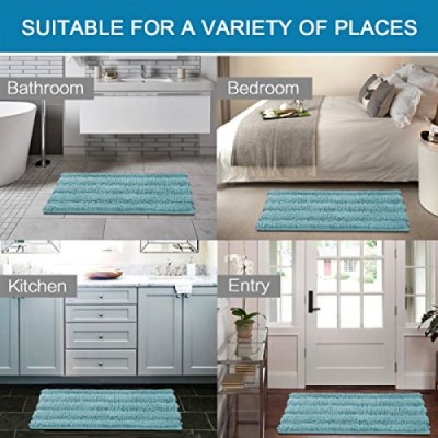 H.VERSAILTEX 욕실용 매우 두꺼운 셔닐 스트라이프 패턴 목욕 깔개 미끄럼 방지 - 바닥, 실내, 출입구용 부드러운 플러시 털복숭이 매트(아쿠아 헤이즈, 32 x 20 플러스 24 x 1