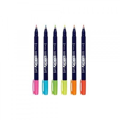 Tombow 56437 Fudenosuke Neon Brush Pen, 6-Pack. Hard Tip Fudenosuke Brush Pens in Assorted Neon Colors for Calligraphy and Art Drawings