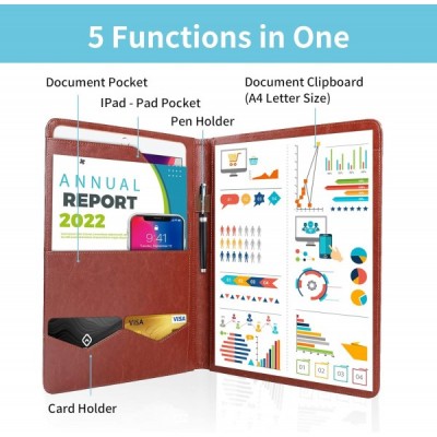 GUYUCOM A4 회의 폴더, Personal Organizer 폴더 A4(클립보드 포함), 파일 케이스, 카드 홀더, 사무용 포켓(브라운)