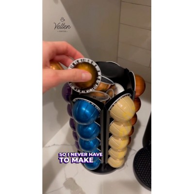 Nespresso Vertuo 캡슐과 호환되는 포드 회전목마 홀더, 360° 회전 가능한 검정색 대용량 42개 포드 보관함, 설탕, 크림 또는 액세서리를 위한 중앙 정리함