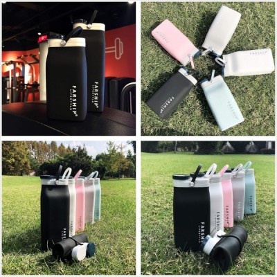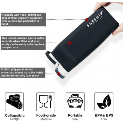 Farship Lifestyle 접을 수 있는 실리콘 물병 5색 경량 누출 방지 및 BPA 프리(블랙, 590ml) 블랙 20oz
