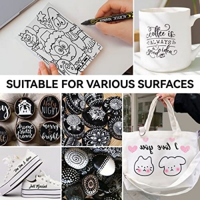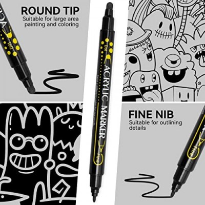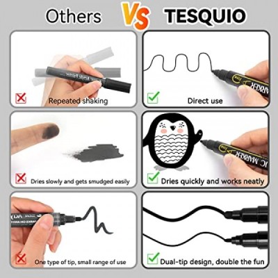Tesquio 블랙 페인트 마커, 8 팩 듀얼 팁 아크릴 페인트 펜, 목재, 암석 그림, 캔버스, 석재, 유리, 세라믹에 이상적