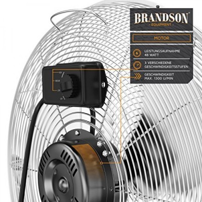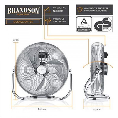 Brandson Retro Wind Machine 스타일 플로어 팬, 크롬 팬, 30cm, 높은 공기 흐름을 갖춘 테이블 팬/플로어 팬, 보안 스탠드, 팬 헤드의 무한 조정 가능한 기울기, 실버