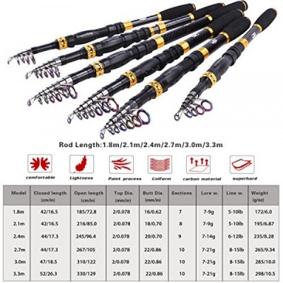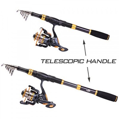 Sougayilang 낚싯대 릴 콤보 여행용 스피닝 릴이있는 탄소 섬유 텔레스코픽 낚시대 바닷물 민물 낚시