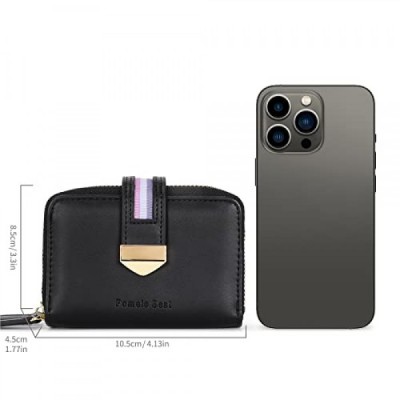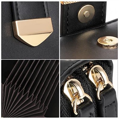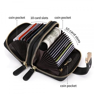 Pomelo 동전 수납칸이 있는 최고의 여성용 신용 카드 소지자 더블 레이어 20 수납칸 지퍼가 있는 RFID 보호 카드 소지자, 업데이트 블랙, 모던