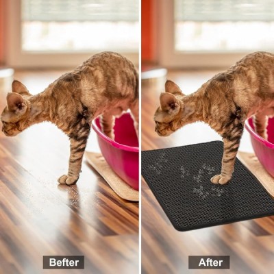 Katzenklo Matte - Unterlage f¨¹r Katzentoilette Mit Waben Struktur,wasserdichte Doppelte Katzenklo,Lebensmittel Matte,Waben Design Katzenklo Vorleger (60 x 45cm)