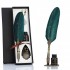 VANGOAL 깃털 펜 및 잉크 세트, 반짝이는 퀼 펜 세트 잉크가 포함된 골동품 서예 딥 펜, 교체 펜촉 2개, 펜 스탠드 베이스, 럭셔리 빈티지 시그니처 펜(녹색)