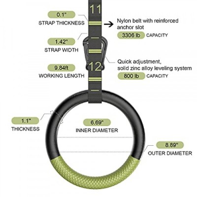 조절 가능한 스트랩이 있는 QUOLIX 체조 링, 스트랩이 있는 미끄럼 방지 풀업 링, 가정용 스트랩이 있는 1300lbs 운동 링, 홈 체육관, 운동, 운동, 훈련, 미용 체조용 체조