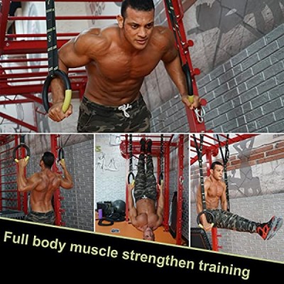 QUOLIX Gymnastic Rings with Adjustable Straps, Non-Slip Pull Up Rings with Straps, 1300lbs Exercise Rings with Straps for Home, Gymnastics Rings for Home Gym, Workout, Exercise, Training, Calisthenic