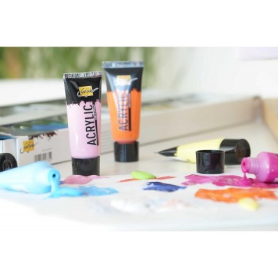 KREUL 84173 - 20ml 튜브에 32가지 색상이 포함된 Solo Goya 아크릴 세트, 연구용 품질의 크리미한 다용도 아크릴 페인트, 수성, 빠른 무광 건조, 우수한 커버리지, 방수 20ml 튜