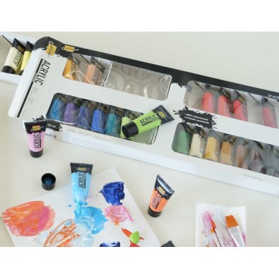KREUL 84173 - Solo Goya Acrylic Set mit 32 Farben in 20 ml Tuben, cremige vielseitig einsetzbare Acrylfarbe in Studienqualität, auf Wasserbasis, schnell und matt trocknend, gut deckend, wasserfest 32 Acrylic Farben in 2