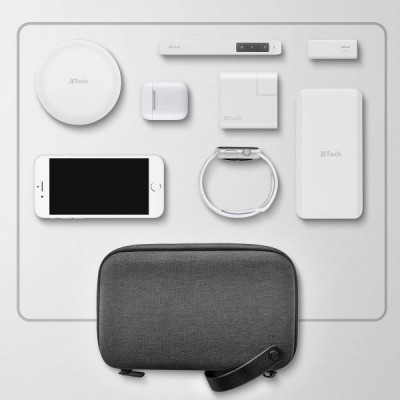 JETech Electronics Accessories Organizer 이중 지퍼와 스트랩이 있는 하드 휴대용 가방, 휴대용 여행용 가제트 가방 호환 케이블, SD 카드, 충전기, 하드 드라이브, 회색