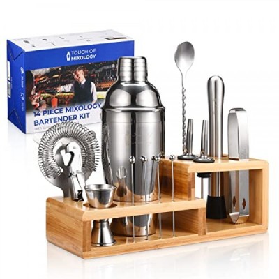 Touch of Mixology 바텐더 키트 - 바 세트 칵테일 셰이커 세트 - 칵테일 키트 세트 - 바텐딩 키트 - 홈 바 필수품 바 카트 액세서리 - 완벽한 집들이 선물 14 PC