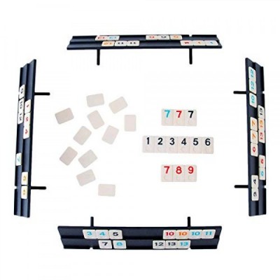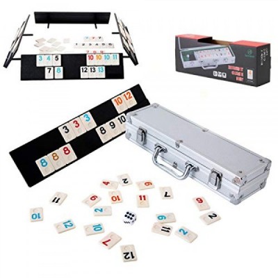 Homwom 106 Tiles Rummy Game - Travel Games Rummy Board Game Rummy Set with Aluminum Case & 4 Anti-Skid Durable Trays rummi2