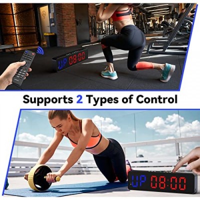 Seesii Gym Timer,LED Workout Colck Count Down/Up Clock,11.5 x 4 Ultra-Clear Digital Display, Power Bank Compatible with Workout Metal Stopwatch, Multi-Scenes with Remote