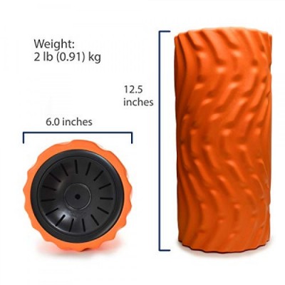 Zyllion Rechargeable Vibrating Foam Roller with 3 High-Density Textured Surfaces and 4 Speeds for Exercise, Massage, Muscle Recovery, Trigger Point Myofascial Release - Orange/Black (ZMA-22-ORBK)