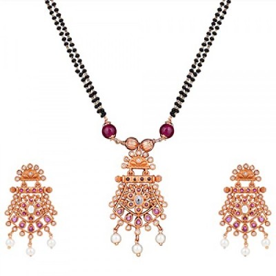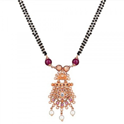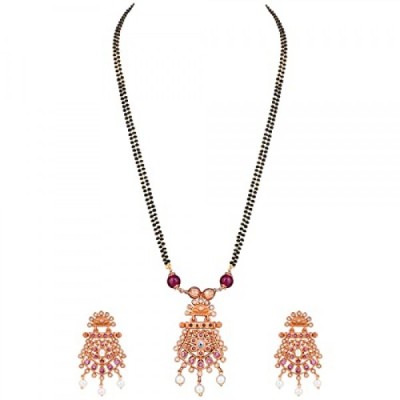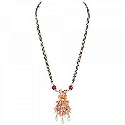 Aheli Eleganter künstlicher Kundan-Chandbali-Stil Anhänger indischer Mangalsutra lange schwarze Pe