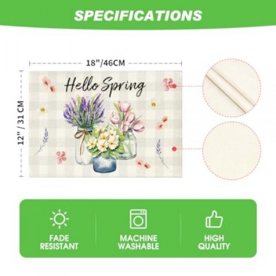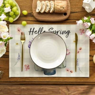 Artoid Mode Buffalo Plaid Flowers Vases Hello Spring Placemats for Dining Table, 12 x 18 Inch Summer Seasonal Holiday Decoration Rustic Vintage Washable Table Mats Set of 4