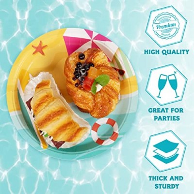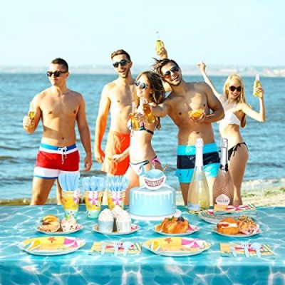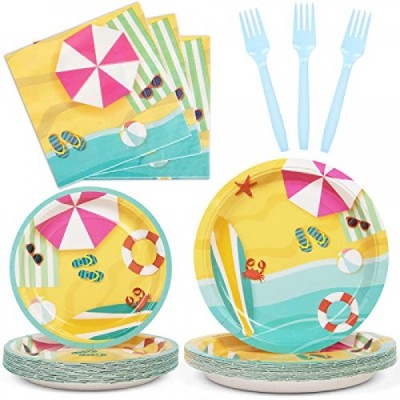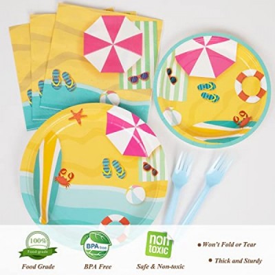 DECORLIFE Beach Party Supplies Serves 24, Plates, Napkins, Forks Included for Kids Birthday, Pool, Summer Party, Baby Shower, Total 96PCS