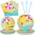 DECORLIFE 비치 파티 용품 24인분, 접시, 냅킨, 포크 포함 어린이 생일, 수영장, 여름 파티, 베이비 샤워, 총 96개