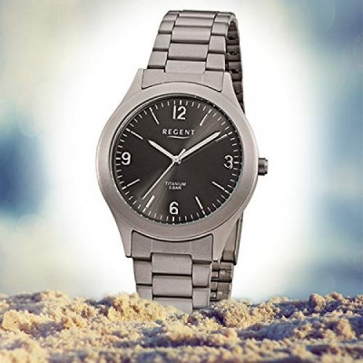 REGENT Men's watch with titanium links, strap and titanium case, 37 mm diameter, quartz, Arabic numerals