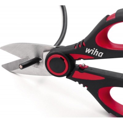 Wiha 160mm SB Prof. elec; 케이블 절단, 스트리핑 및 크림핑을 위한 크림핑 기능이 있는 케이블 가위, 고정 클립이 있는 보호 케이스 포함