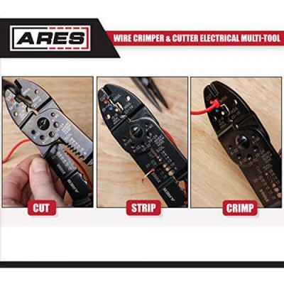 ARES 21002-9-inch Wire Stripper, Crimper, and Cutter Electrical Multi-Tool - Crimp Insulated, Non-Insulated and Ignition Terminals - Strip and Cut 8-22 AWG Stranded and 10-24 AWG Solid Wire
