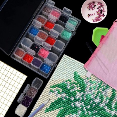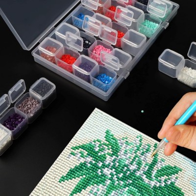 BELLE VOUS 다이아몬드 페인팅 작은 부품 분류 상자 부속품이 있는 플라스틱 상자(285개) - 예술용 뚜껑, 가방 및 라벨 세트가 있는 4 x 28 작은 상자 - 성인 및 어린이용