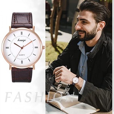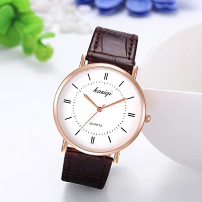 JewelryWe 시계 쌍 아날로그 석영 파트너 우정 시계 남성 여성을위한 클래식 간단한 가죽 스트랩 커플 시계 블랙/브라운