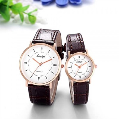 JewelryWe Pair of Watches Analogue Quartz Partner Friendship Watch Classic Simple Leather Strap Couple Watch for Men Women Black/Brown