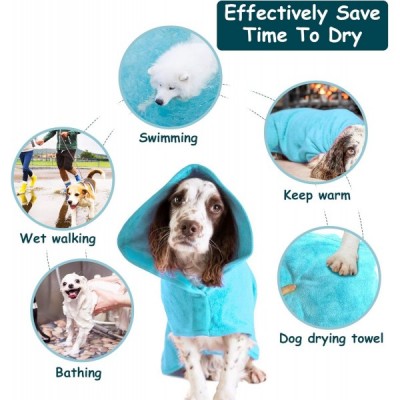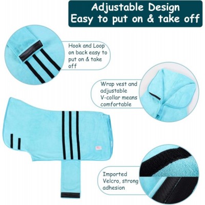 HAPPY HACHI 극세사 개 목욕 가운 빨 수 있는 고양이 빠른 건조 목욕 타올 조절 가능한 스트랩이 있는 초흡수성 애완 동물 코트(L, 스카이 블루) L 스카이 블루