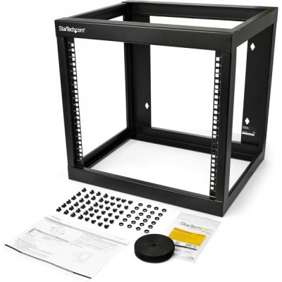 StarTech.com 9U 19" Wall Mount Network Rack 17" Deep 2 Post Open Frame for Server Room/Data/AV/IT/Communication/Computer Equipment/Patch Panel w/Cage Nuts/Screws Hook/Loop 175lb Capacity (RK919WALLO)