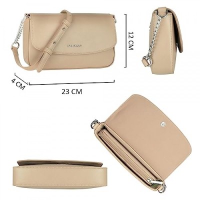 David Jones - Small Shoulder Bag Women's - Crossbody Bag PU Leather - Women's Chain Shoulder Bag Rectangular Bag - Evening Bag Mobile Phone Handbag Clutch Chain Bag - Elegant Travel Party, beige,