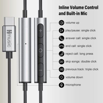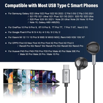 USB C 헤드폰, Hmusic USB Type C 헤드폰 마그네틱, 유선 이어폰 삼성 Galaxy S22 S21 S20 FE22/ Pixel 6 5 4 3XL/ Xiaomi 12/11용 마이크 볼륨 컨트롤이 있는 인이어 헤드셋(검은색)