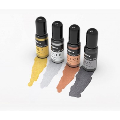 Metallic Alkohol Tinte Set - 24 Farben Hochkonzentrierte Tinte auf Alkoholbasis, konzentrierte Epoxidharzfarbe Farbstoff Ideal für Harz-Petrischalen, Untersetzer, Malerei (je 10 ml)