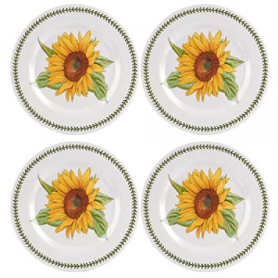 Portmeirion Botanic Garden Collection Dinner Plate | Set of 4 Dinner Plates | 11 Inch Plates with Sunflower Motif | Made from Melamine for Indoor and Outdoor use | Dishwasher Safe