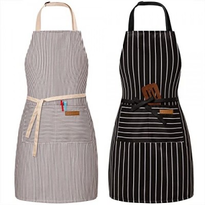 BeLuyi 2 Pack Adjustable Bib Apron with 2 Pockets Chef Cooking Kitchen Restaurant Aprons for Women Men