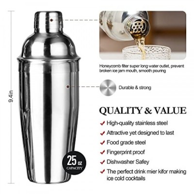 Mixology 바텐더 키트, 스탠드가 포함된 16피스 실버 바텐더 키트, 25온스 바 세트 칵테일 셰이커 세트, 가정용, 바, 파티용 전문 스테인레스 스틸 바텐더 키트