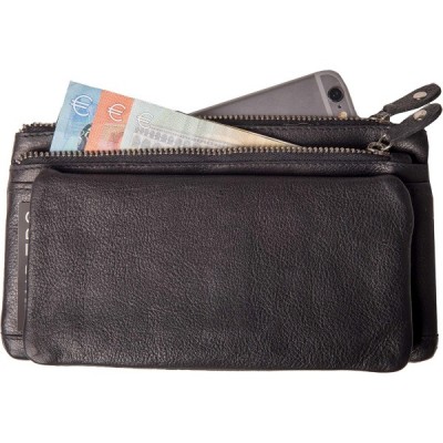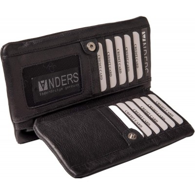 ANDERS Damen Leder Geldbörse Impfpasshülle Impfausweishülle extra dünn (Schwarz)