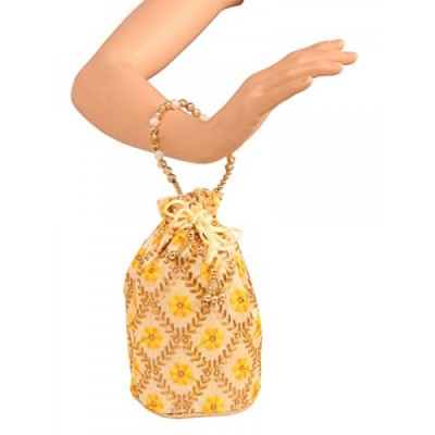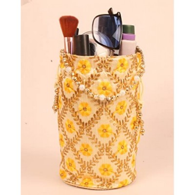 INDTRESOR beaded handcrafted embroidered evening purse drawstring handbag vintage party wedding gift for women.