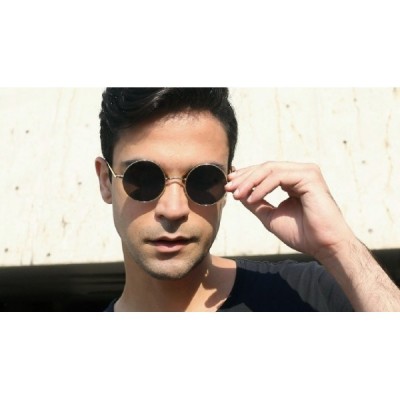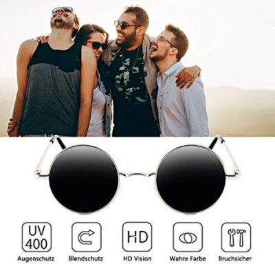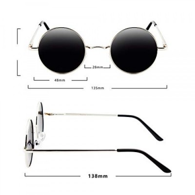 BangLong Sunglasses Unisex Round Polarised Retro Vintage Sunglasses, Mirrored Lenses - Black/Sliver