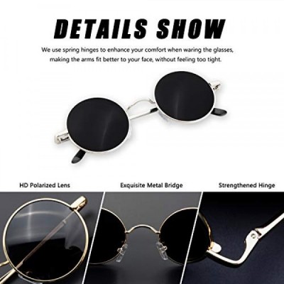BangLong 선글라스 남녀공용 원형 편광 레트로 빈티지 선글라스, 미러 렌즈 - 블랙/슬리버
