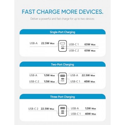 65W USB C Charger, ARZOPA GaN Fast Charger 3-Port Power Adapter Compact Foldable Plug for Smart Phone/Laptop/Tablet/Monitor/iPad/MacBook -C65