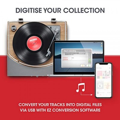 ION Audio Premier LP, 스피커가 포함된 USB Bluetooth 턴테이블/PC 또는 Mac으로의 디지털 변환기, 천연 목재 마감