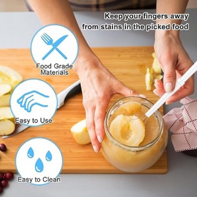 Tophoniex 4PCS Pickle Picker Deluxe Pickle Pincher Stainless Steel and Plastic Pickle Grabber Tool Olive Pepper Grabber, 8 Inches, White